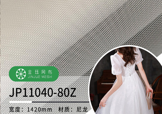 JP11001白色尼龍婚紗禮服類絲網布是我們的基本款,也是熱銷及應用廣泛的一種尼龍網眼布, 該商品目數為10絲80目,顏色主要有本白色、膚色、金色、銀色等,顏色、目數、克重門幅都可以來圖來樣定制。主要用于制作婚紗禮服、西服等里襯高級面料,繡花高級底料。