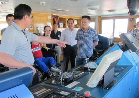 海洋局北海分局副局長(zhǎng)劉心成和“大洋一號(hào)”船長(zhǎng)分別為大家介紹了“大洋一號(hào)”的船舶結(jié)構(gòu)、船載儀器設(shè)備、各項(xiàng)參數(shù)性能以及歷次重大執(zhí)航任務(wù)等情況。考察團(tuán)一行參觀了駕駛室、實(shí)驗(yàn)室、作業(yè)甲板,對(duì)船舶動(dòng)力系統(tǒng)和綜合科學(xué)考察能力進(jìn)行了詳細(xì)了解。