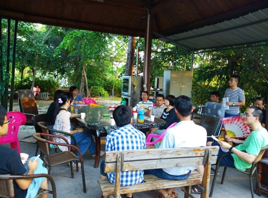 當(dāng)天,參加人員圍坐在石桌旁,各自暢談讀書(shū)感悟,分享他們與書(shū)的故事。籌建組組長(zhǎng)丁抗與大家分享了閱讀《經(jīng)度》的感悟,他用書(shū)中人物的故事激勵(lì)大家努力工作,成就精彩人生。他希望系列讀書(shū)活動(dòng)能在所里深入開(kāi)展、推廣,讓更多地職工參與進(jìn)來(lái)。