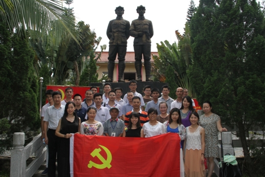 17日,全體黨員來(lái)到定安,參觀了母瑞山革命根據(jù)地紀(jì)念園,瞻仰革命先烈馮白駒、王文明塑像,并聽(tīng)取了紀(jì)念園園長(zhǎng)王學(xué)廣介紹母瑞山革命根據(jù)地的歷史。?