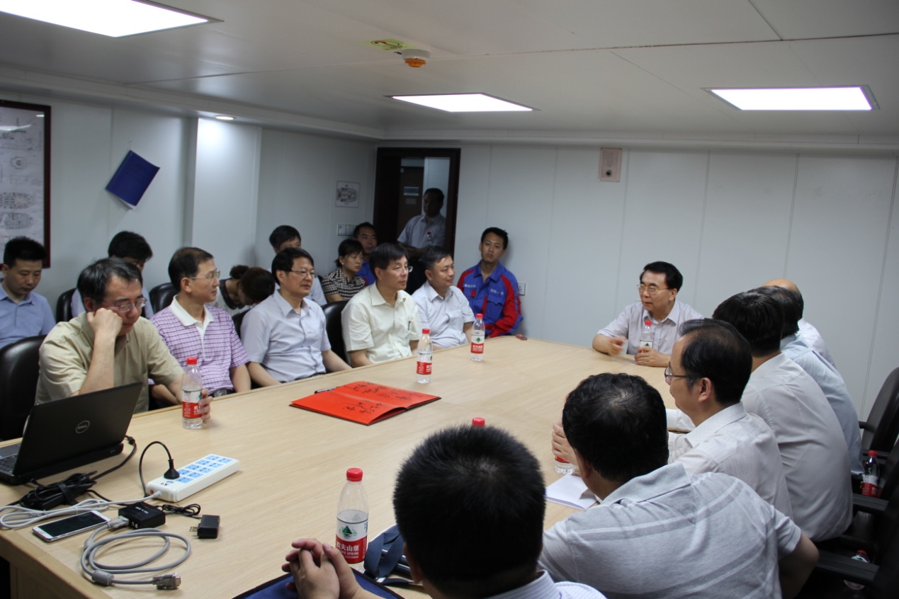 聽取匯報后,白春禮發(fā)表講話,他說,“探索一號”在短短13個月,多家涉海單位協(xié)同創(chuàng)新,工作人員主動犧牲休息時間,共同攻克了多項技術難點,創(chuàng)造了多個國內(nèi)之最,充分體現(xiàn)了奉獻和協(xié)作兩個精神,也體現(xiàn)了科學家的戰(zhàn)略前瞻眼光。他特別指出,“探索一號”突破常規(guī)、大膽創(chuàng)新型的完成改修,為國家深海研究計劃的實施奠定了基礎。希望深海所集聚院內(nèi)外優(yōu)勢力量,按照國家深海戰(zhàn)略需求,充分發(fā)揮“探索一號”深海科考和工程作業(yè)的支持能力。