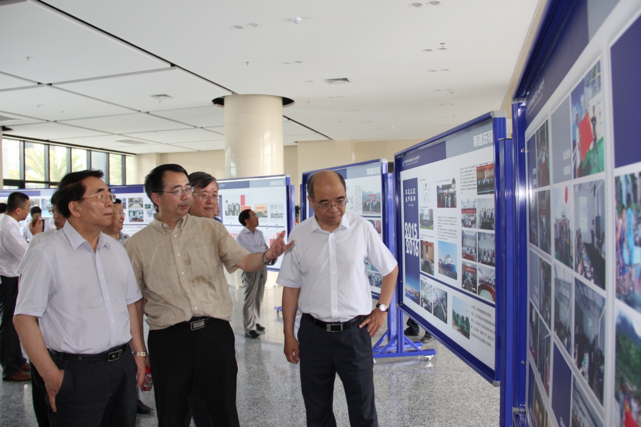 隨后,白春禮來到深海所科研園區(qū),參觀了深海工程技術實驗室機加工中心、200Mpa深海超高壓模擬試驗裝置、目前國內(nèi)同類水池中最深的綜合水池,以及深海所籌建歷程展等。在展廳觀看了“蛟龍?zhí)枴鄙詈O聺?span>3D視頻。