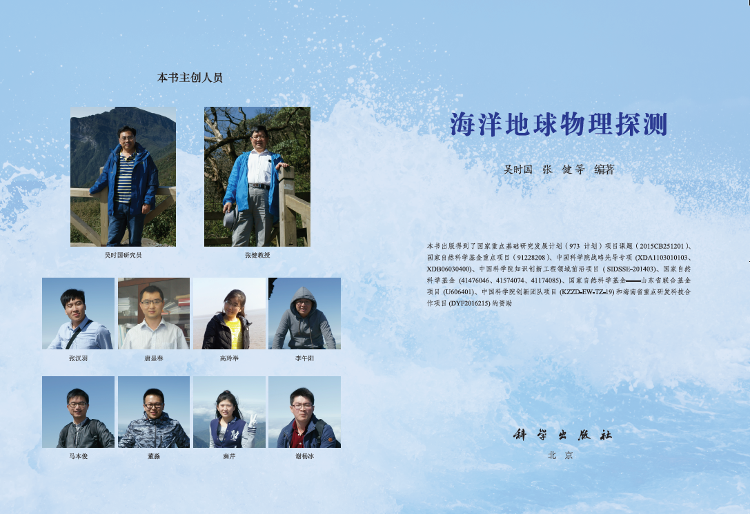 2017年7月,由深海所署名資助,深海科學(xué)部-深海地球物理與資源研究室吳時(shí)國研究員、中國科學(xué)院大學(xué)地球科學(xué)院海洋地球物理(地?zé)崤c地球動力學(xué)) 學(xué)科組張健教授等人聯(lián)合編著的《海洋地球物理探測》一書在科學(xué)出版社(北京)正式發(fā)行。