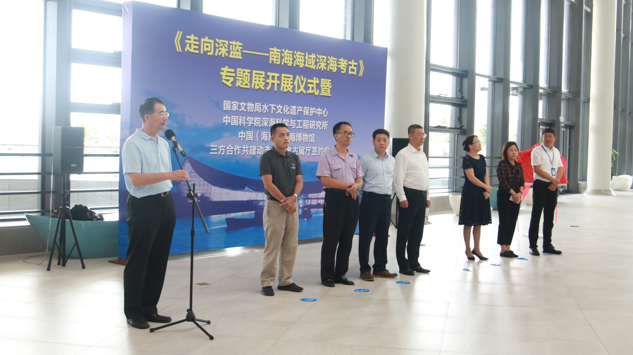 2019年3月22日上午,《走向深藍——南海海域深海考古》專題展開展儀式暨國家文物局水下文化遺產保護中心、中國科學院深海科學與工程研究所、中國(海南)南海博物館三方合作共建動態水下考古展廳簽約儀式在中國(海南)南海博物館順利舉行。