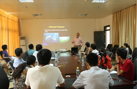 4月13日,應(yīng)李松海研究員邀請(qǐng),美國(guó)夏威夷大學(xué)Paul Eugene Nachtigall教授來訪三亞深海所,并作了題為:海洋哺乳動(dòng)物研究綜述(Marine Mammal Research Overview)的報(bào)告。三亞深海所籌建組副組長(zhǎng)謝強(qiáng),國(guó)家海洋局第一海洋研究所姜瑩博士,遼寧省海洋水產(chǎn)科學(xué)研究院張培君博士及三亞深海所部分科研人員參加了會(huì)議。