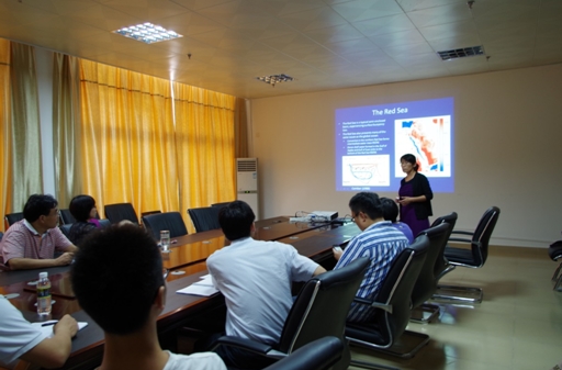 報(bào)告中,翟平博士介紹了她的工作內(nèi)容,包括基于CFCs和SF6示蹤物的區(qū)域海洋環(huán)流反演研究,紅海環(huán)流的數(shù)值模擬以及CFCs和SF6示蹤物的測量等。我所科研人員就紅海海底有無鹽池,研究紅海區(qū)域的意義以及示蹤物取樣等問題與翟平博士進(jìn)行了深入交流。
