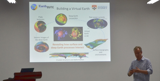 Müller教授首先簡要介紹了悉尼大學(xué)EarthByte課題組基本情況,以及利用EarthByte課題組開發(fā)的GPlates軟件構(gòu)建虛擬地球的方法,展示了其相關(guān)的研究成果。隨后,他詳細講解了威爾遜旋回中的洋中脊長度、海底擴張速度、俯沖洋殼年齡等參數(shù),影響海水中鈣與鎂的比重、洋底熱流分布的機制。