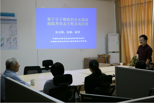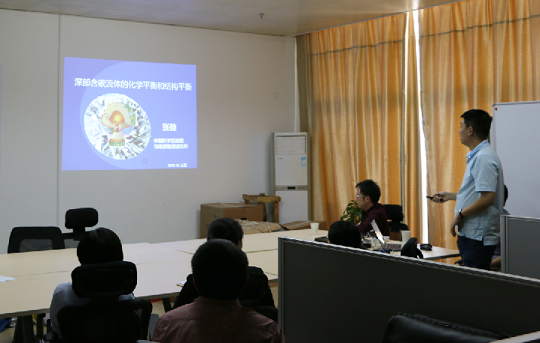 12月16日,應(yīng)深海極端環(huán)境模擬研究實(shí)驗(yàn)室周義明研究員的邀請,中科院地質(zhì)與地球物理研究所張志剛副研究員、張弛副研究員、耿明博士到所訪問交流,分別作了題為“基于分子模擬的含水流體超臨界狀態(tài)方程及其應(yīng)用”、“深部含碳流體的化學(xué)平衡和結(jié)構(gòu)平衡”、“天然氣分子在微納孔隙中擴(kuò)散研究”的學(xué)術(shù)報告。