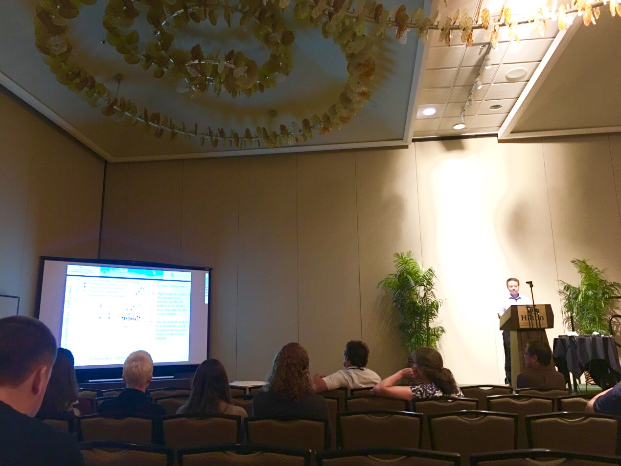 2016年11月28日-12月2日,中國科學院深海科學與工程研究所海洋哺乳動物與海洋生物聲學研究組研究員李松海博士受邀參加“第172屆美國聲學學會會議暨第5屆美日聲學學會聯合會議”。會議期間,李松海研究員在生物聲學分會場分別作了題為“Recent bioacoustics researches on biosonar hearing and noise effect on the Indo-Pacific humpback dolphins (Sousa chinensis) ”和“Bioacoustics Research in Asia, Promoted by Whitlow W. L. Au”的兩個邀請報告,引起了與會專家對我們近年來在鯨豚生物聲學研究領域所開展工作的廣泛興趣和關注。