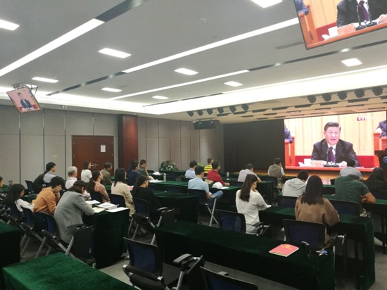 12月18日,中國科學院深海科學與工程研究所在1003會議室組織觀看慶祝改革開放40周年大會,聆聽習近平總書記重要講話精神。?