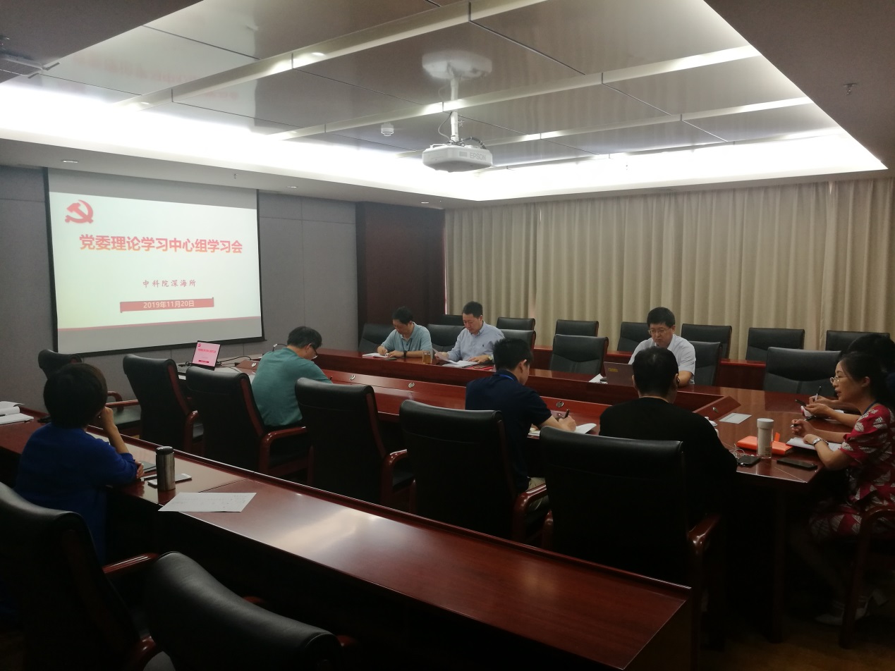 1120日下午,中國科學院深海科學與工程研究所在綜合樓815會議室召開黨委理論學習中心組學習會,重點學習領會中央十九屆四中全會精神。在所領導班子成員、黨委委員、各部門負責人等參加學習會。