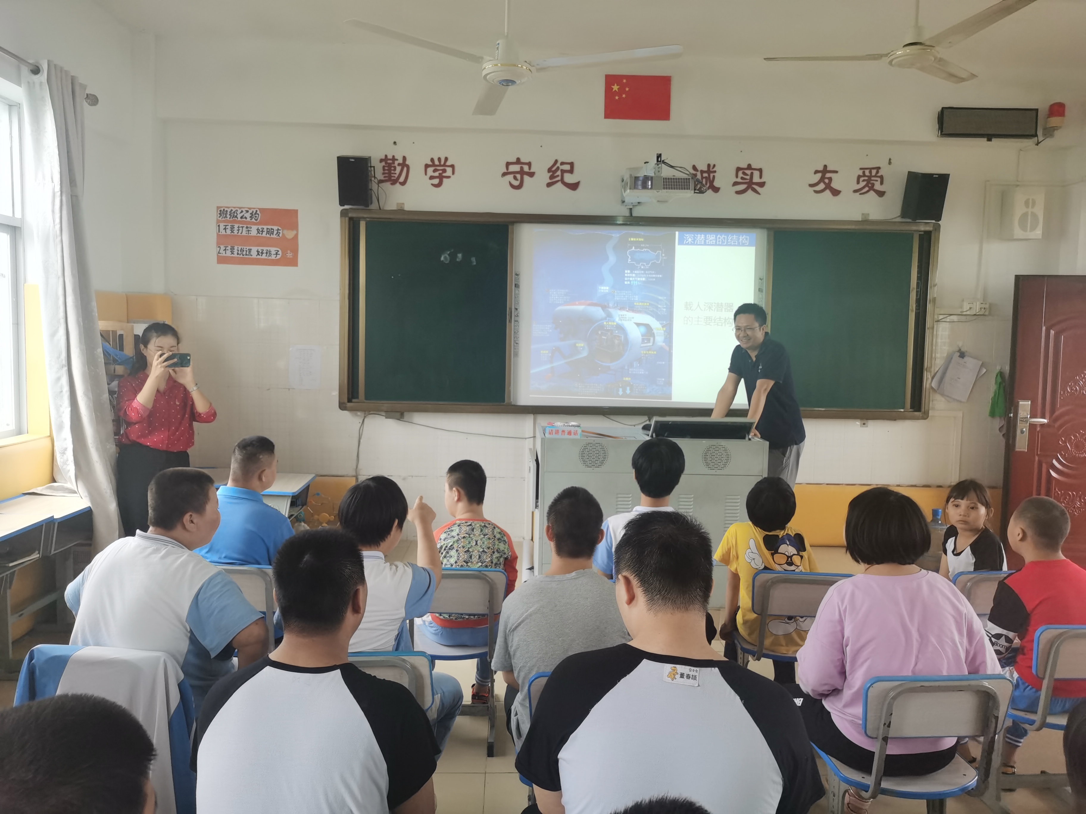 支部黨員首先在學校負責人的帶領下,參觀教室、宿舍、食堂及手工作品展覽室等,認真傾聽學校辦學情況,詳細了解學生的學習和生活情況。并為孩子們送上了雨衣、海洋仿真玩具模型、籃球等生活、學習和體育用品。隨后,支部書記陳順為孩子們呈現了一堂生動有趣的海洋科普講座,并播放了海洋科考的視頻,帶領他們一起探索海底世界的奧秘,叩開認知海洋世界的大門。孩子們熱情高漲,認真聽講,表現出了濃厚的興趣和熱情??破战Y束后,支部黨員與孩子們積極互動和交流,孩子們還自豪地拿出自己的繪畫作品向大家展示,用他們自己的方式表達對生活的熱愛和感恩?;顒拥淖詈螅Р奎h員與特殊教育學校的老師就如何更加深入地為孩子們提供力所能及的幫助等問題進行了交流。