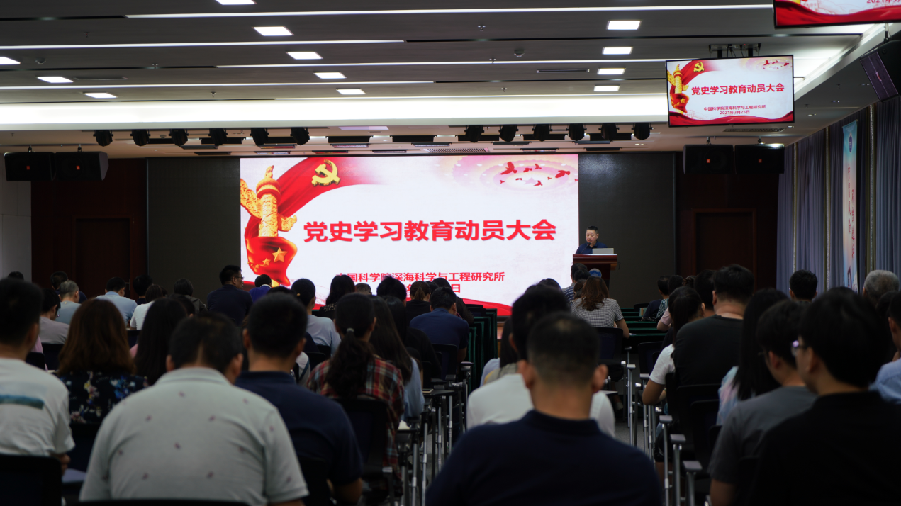 3月25日,深海所召開黨史學習教育動員大會,認真學習貫徹習近平總書記在黨史學習教育動員大會上的重要講話精神,傳達中科院院黨政負責人黨史教育培訓會議精神,部署開展深海所黨史學習教育。會議由黨委副書記(主持工作)、副所長陽寧主持。全體黨員、入黨積極分子、六級以上管理干部共120余人參加了動員會。所長丁抗出席會議并作動員講話。