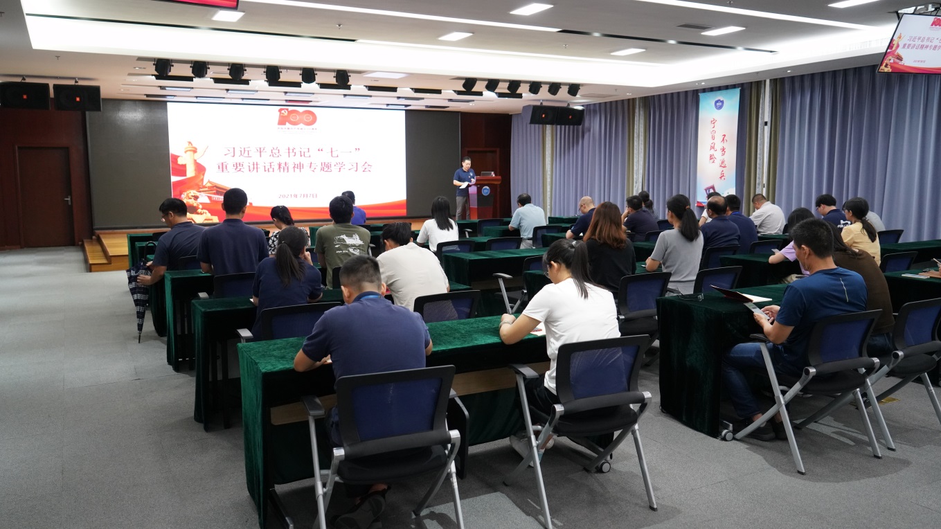 7月7日下午,深海所召開全體黨員大會,學習習近平總書記在慶祝中國共產黨成立100周年大會上的重要講話,交流心得體會,安排部署貫徹落實工作。在所黨員,非黨員職工、研究生80余人參加了會議。