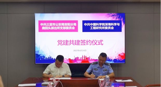 6月24日下午,深海所黨委與鹿回頭派出所黨支部舉行黨建共建簽約儀式。
