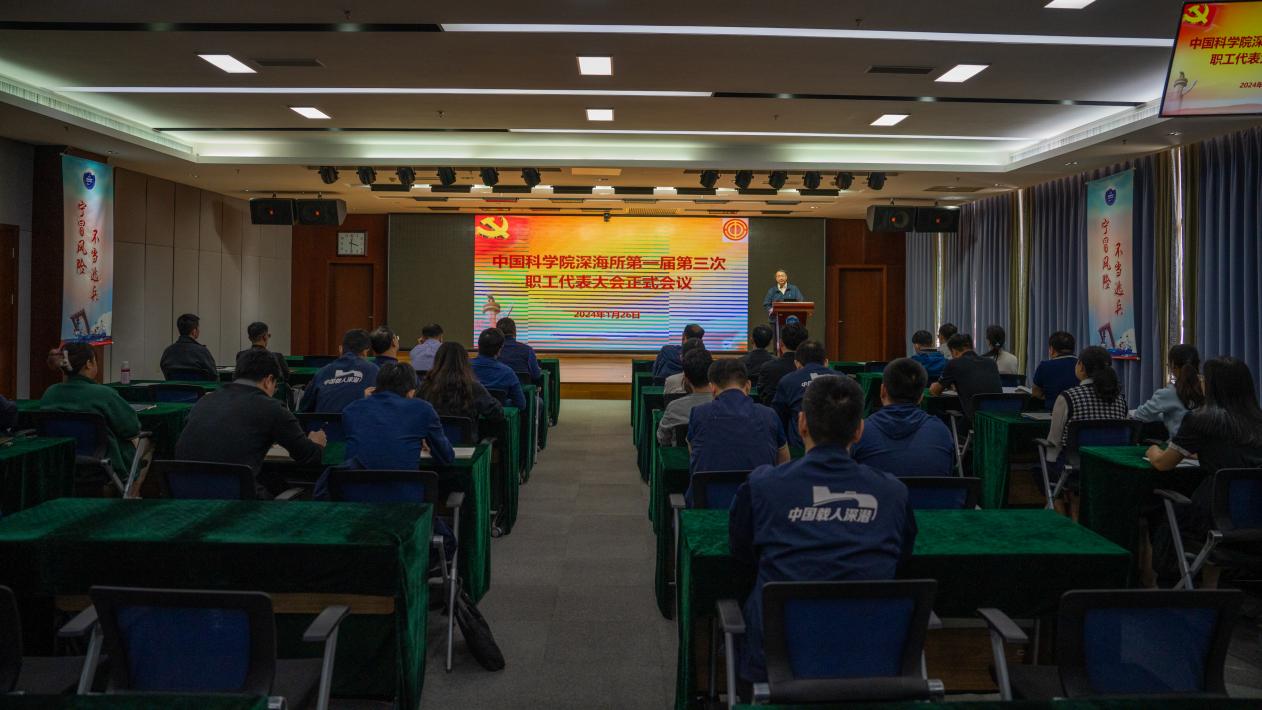 2024年1月26日下午,中國科學院深海科學與工程研究所第一屆職工代表大會第三次會議在綜合樓1003舉行。深海所40名職工代表參加會議,所長丁抗出席會議,工會主席、黨委書記、副所長彭曉彤主持會議。
