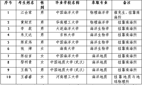 2015年三亞深海所招收攻讀碩士學位研究生通過復試(擬錄取)名單公示