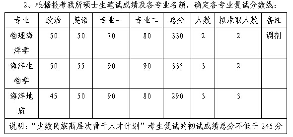 1、復(fù)試采用口試與筆試相結(jié)合方式進(jìn)行。筆試各專業(yè)分別對(duì)應(yīng)考試《海洋生物學(xué)》《物理海洋》《海洋地質(zhì)與地球化學(xué)》,統(tǒng)一參考書目為《海洋科學(xué)導(dǎo)論》(高等教育出版社,作者馮士筰、李鳳岐)。英語聽力和口語測(cè)試由老師通過口試方式完成,專業(yè)復(fù)試內(nèi)容主要考察考生的綜合素質(zhì)與培養(yǎng)潛質(zhì)以及對(duì)學(xué)科基礎(chǔ)知識(shí)、所學(xué)專業(yè)知識(shí)的掌握程度等;思想品德的面試包括考生的政治態(tài)度、思想品德、工作學(xué)習(xí)態(tài)度、團(tuán)隊(duì)合作精神、科研道德、遵紀(jì)守法以及心理素質(zhì)等內(nèi)容。