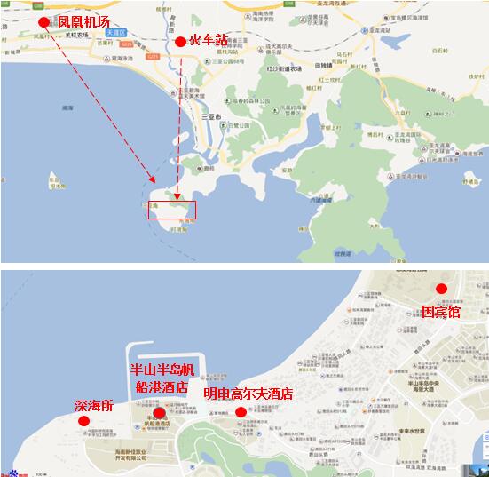 (2)Sanya Mingshen Golf Hotel (~1km away from Institute of Deep-Sea Science and Engineering, Chinese Academy of Sciences);