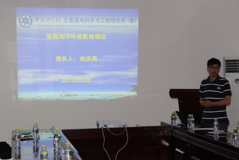 徐洪周做了題為“深海海洋環(huán)境數(shù)值模擬”的報(bào)告。從數(shù)值模擬的重要性、模式的選擇來(lái)介紹了前期的工作,并對(duì)未來(lái)海洋環(huán)境數(shù)值模擬實(shí)驗(yàn)室的建設(shè)提出了需求和總體目標(biāo)。