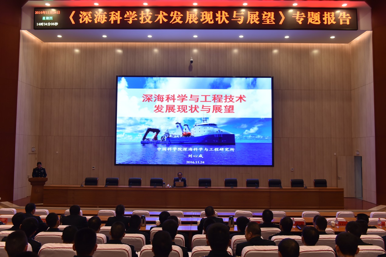 2016年11月24日,深海所首席顧問劉心成受邀赴火箭軍工程大學作題為《深海科學技術發展現狀與展望》的報告。