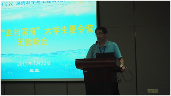在夏令營的閉幕式上,丁抗所長做了閉幕致辭。他給同學們講述了海洋在地球上的重要地位,以及海洋科學研究對于人類發展的重要性,希望更多的有志青年學者能夠加入到深海研究的隊伍中來。最后,夏令營在營員們以精心編排的豐富多彩的晚會節目中圓滿結束。