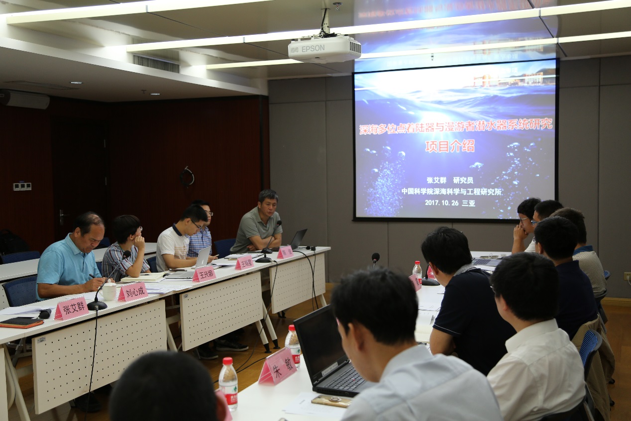 2017年10月26日,中國(guó)科學(xué)院深海科學(xué)與工程研究所在三亞組織召開(kāi)了國(guó)家重點(diǎn)研發(fā)計(jì)劃“深海關(guān)鍵技術(shù)與裝備”重點(diǎn)專項(xiàng)“深海多位點(diǎn)著陸器與漫游者潛水器系統(tǒng)研究”項(xiàng)目啟動(dòng)會(huì)。項(xiàng)目責(zé)任專家、項(xiàng)目參研單位代表共計(jì)20人參加了會(huì)議。