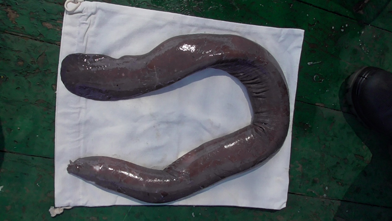 4、本次海試同時成功誘捕了大王具足蟲7只,最大長度25cm;盲鰻1只,全長90cm,為深海生物的研究提供了新的樣本。