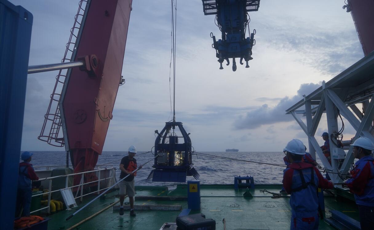 2019826日,結束為期18天的TS13-1航次任務,“探索一號”勝利返航。深海工程地質原位測試裝置參加了本次海試,在100m1000m3000m等水深的多個深度區域成功布放5次,對各深度下的多個點位分別開展了數次靜力觸探試驗和剪切阻力試驗,獲取了10個點位的靜力觸探貫入試驗數據(包括錐尖阻力、側壁摩擦力和孔隙水壓力)和4個點位的剪切阻力數據,最大試驗水深3013m,最大貫入深度達到10.4m。值得一提的是,深海工程地質原位測試裝置高度最大約13.5m,這次海試的成功對“探索一號”船上其他大尺寸海洋裝備的海上試驗有著重要的借鑒意義。