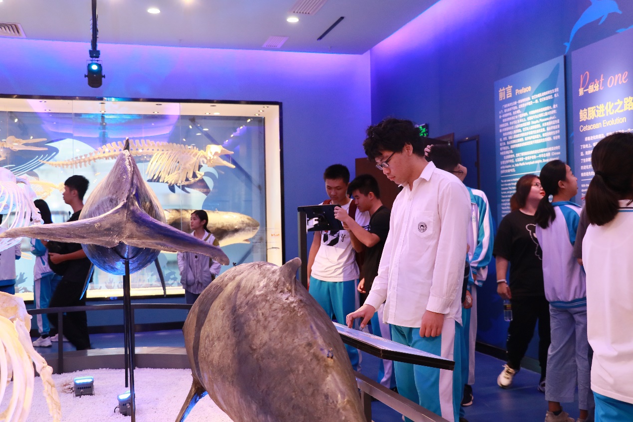 當(dāng)天,潛航員李保生給同學(xué)們帶來(lái)了深??破罩v座,他向同學(xué)們介紹了“深海勇士”號(hào)載人潛水器的技術(shù)參數(shù)和參加的科考航次,一邊講述自己親歷的下潛故事,一邊展示“深海勇士”號(hào)視角拍攝的深海視頻,同學(xué)們紛紛感嘆海底世界的奇妙。隨后,在工作人員的帶領(lǐng)下,同學(xué)們參觀了工程實(shí)驗(yàn)室,零距離接觸深淵著陸器、深海機(jī)器人等深海裝備;觀看了深淵科考紀(jì)實(shí)片,感受了深淵科考的艱辛;參觀了鯨豚標(biāo)本館,了解了各類鯨豚標(biāo)本及海南島周邊發(fā)現(xiàn)的鯨豚種群?;顒?dòng)結(jié)束后,同學(xué)們紛紛表示對(duì)深??茖W(xué)和深淵探索產(chǎn)生了濃厚的興趣。