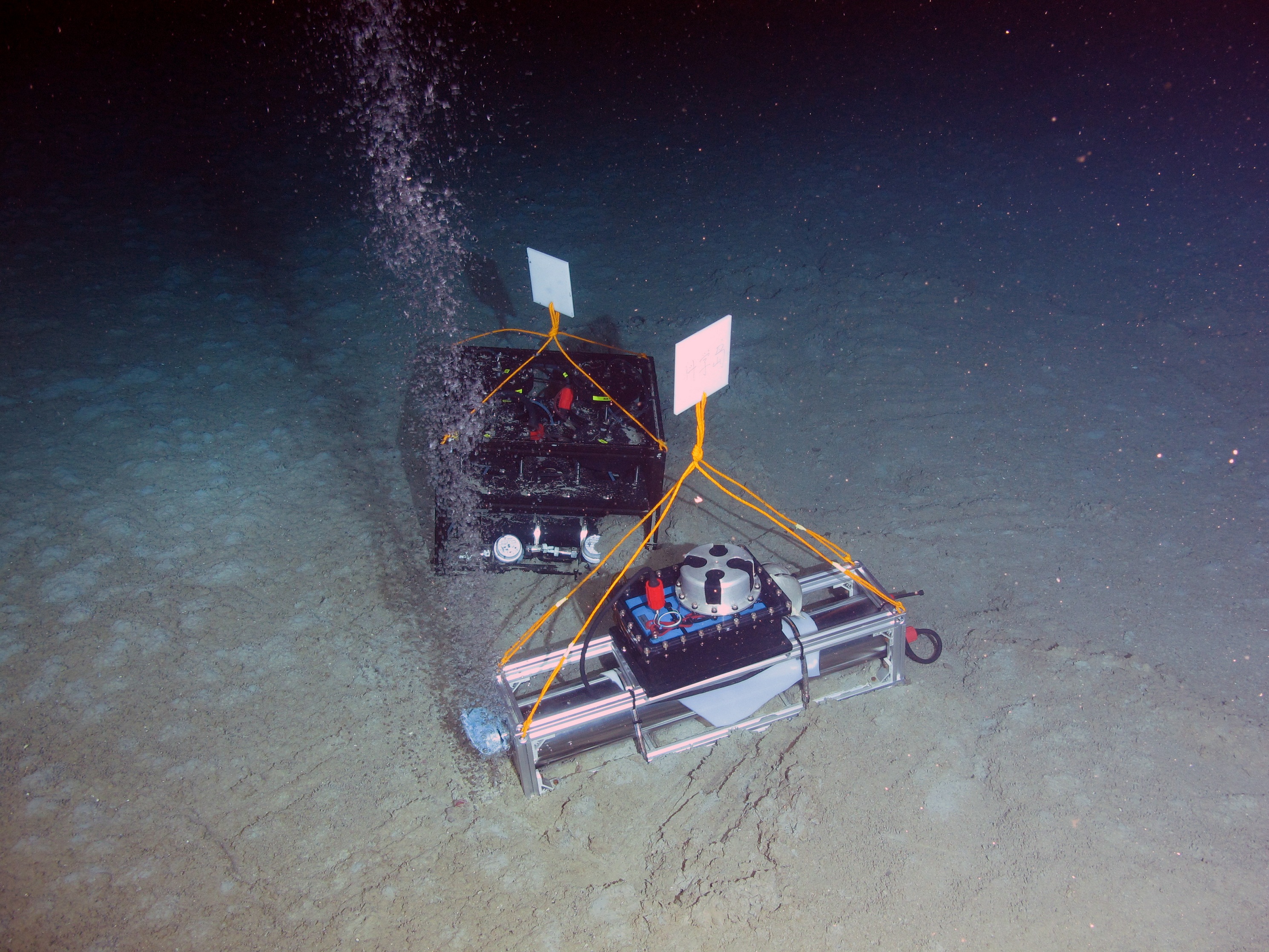 由中科院合肥物質科學研究院、長春光學精密機械與物理研究所與深海所共同研制的深海甲烷/二氧化碳光譜分析儀、中科院上海微系統與信息技術研究所與深海所共同研制的我國首套深海MEMS氣相色譜儀、中國科學技術大學與中科院深海所共同研制的我國首套深海核輻射探測儀(CZT/晶體型伽馬譜儀)、中科院深海所研制的深海底部生物地球化學原位實驗系統和原位微生物過濾系統共計17臺次搭載深海勇士號載人潛水器,原位獲取了近20種低分子量碳氫氣體組分、溶解甲烷/二氧化碳濃度、γ放射性核素等重要數據,在南海~1800米開展了甲烷氧化速率原位同位素示蹤實驗,為深海深潛科學研究再添利器