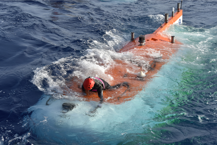 “蛙人”正在解開拖拽纜