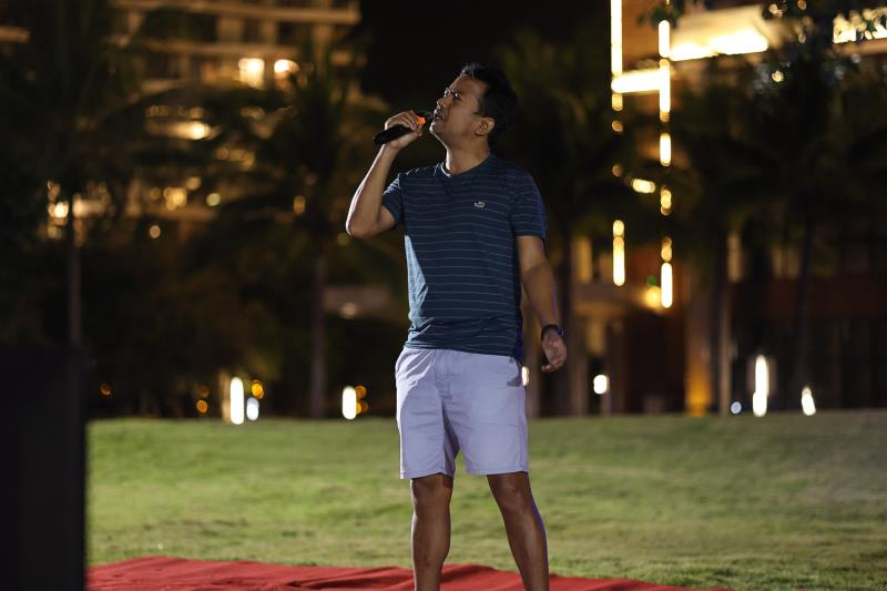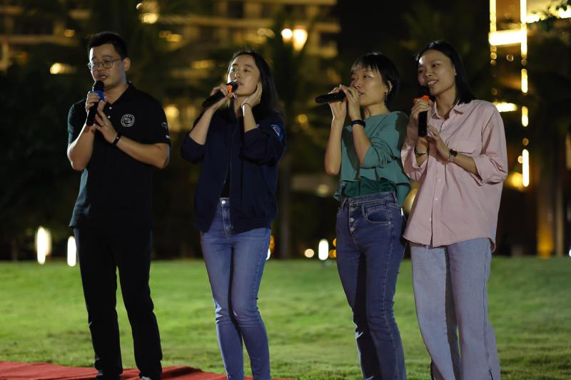 隨后,工程部黃文健演唱了歌曲《天高地厚》,潛航員楊雨辰進行了小提琴串燒彈奏,悠揚的小提琴在草地上久久回蕩。接下來,探索一號船和探索二號船團隊分別帶來了歌曲《中國人》《真心英雄》《可可托海的牧羊人》《一生中最愛》,讓全場感受到了探索團隊的力量。諾亦騰的吳祎和物業分別帶來《Melody》和《不放棄》歌曲,人事教育處合唱了動聽的《我只在乎你》,海裝中心唐古拉山主任帶來了《暗香》歌曲。