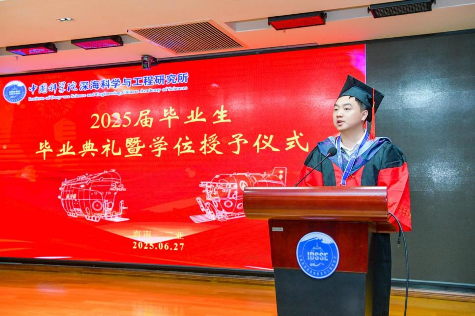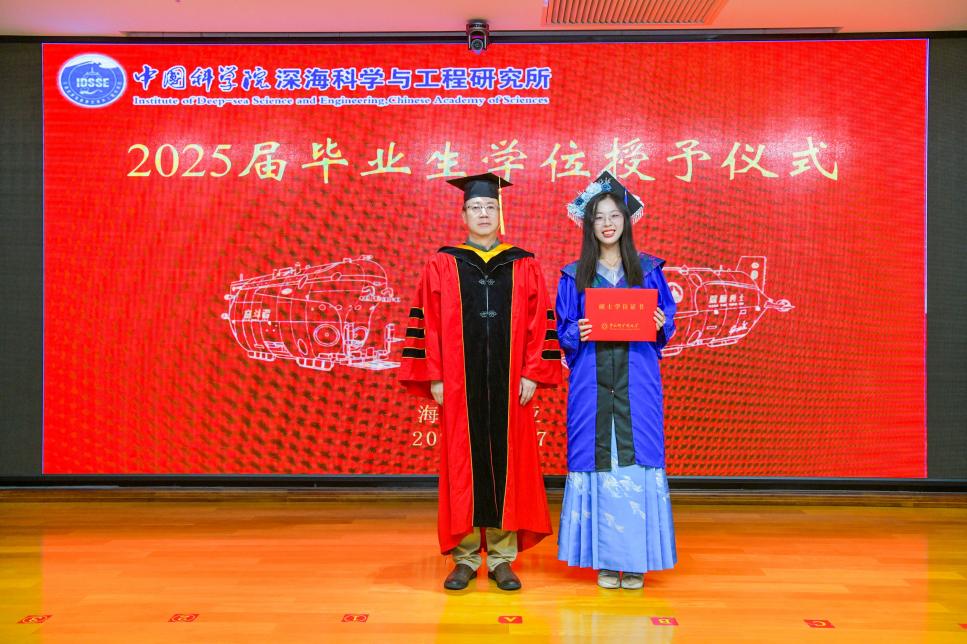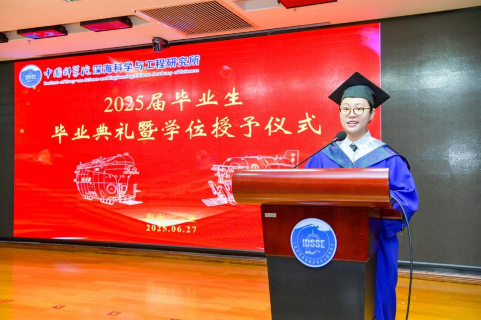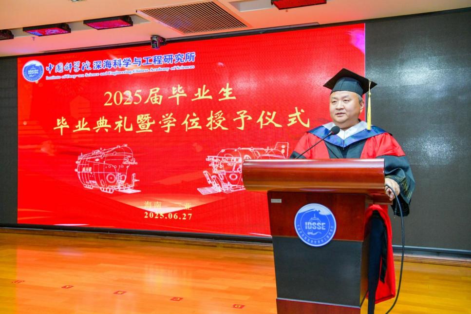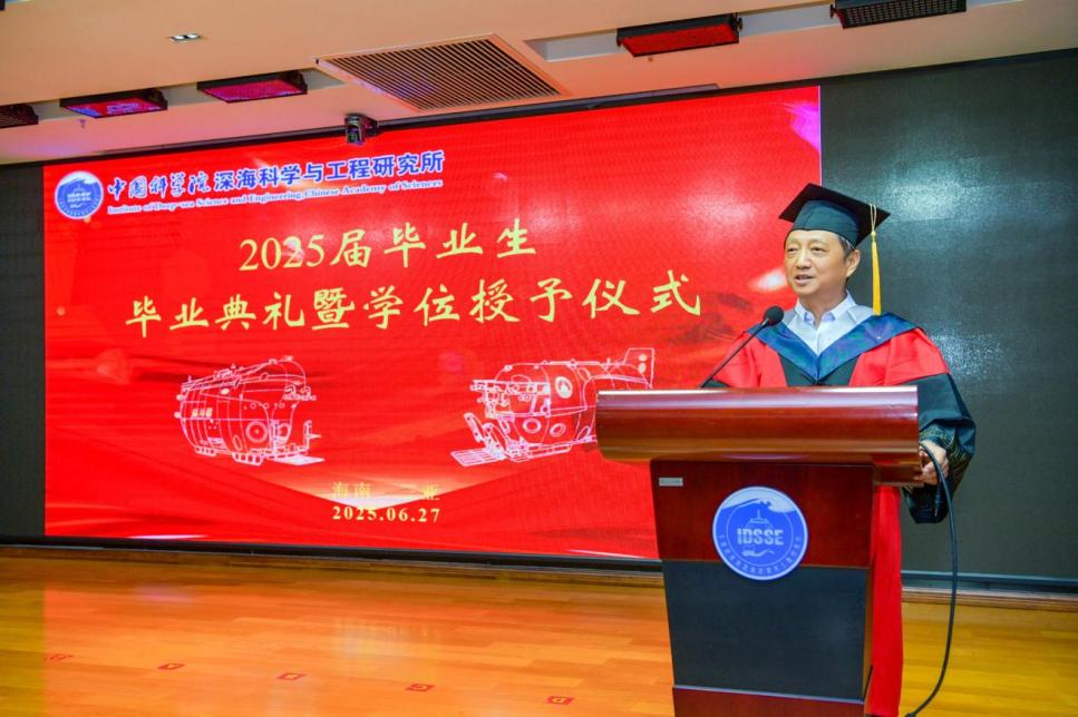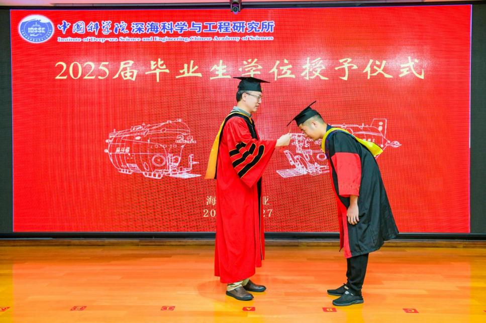 2025627日, 中國科學院深海科學與工程研究所(以下簡稱“深海所”)2025屆研究生畢業典禮暨2024-2025學年優秀學生表彰大會在1003會議室順利舉行。所領導、學位評定委員會委員、研究生導師及人事教育處老師齊聚一堂,共同歡送34名畢業生。會議由崖州灣園區管理部主任張忠主持。