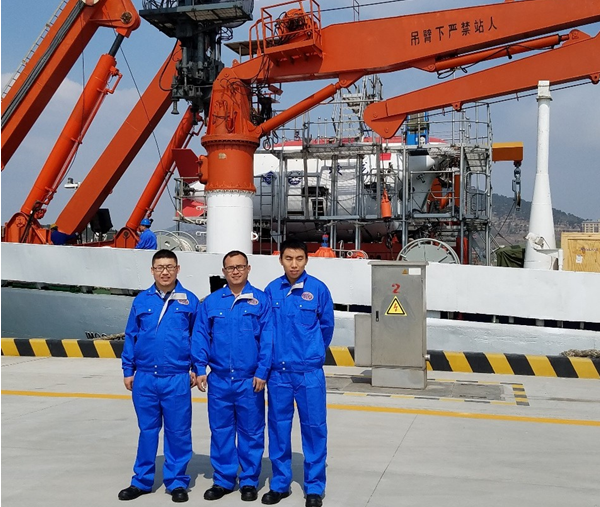 5月15日早上,水面支持系統(tǒng)人員在布放“蛟龍?zhí)枴陛d人潛水器
