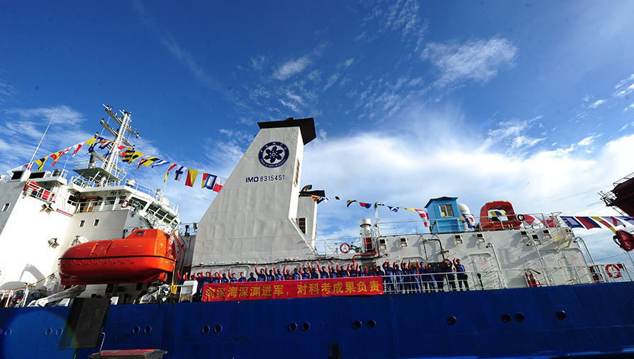 中國(guó)4500米載人潛水器及萬米深潛作業(yè)工作母船“探索一號(hào)”科考船首航取得圓滿成功