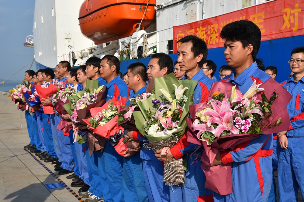 23日上午8:30,中國(guó)科學(xué)院丁仲禮副院長(zhǎng)、海南省科技廳副廳長(zhǎng)王利生、科技部、國(guó)家海洋局北海分局、三亞市等有關(guān)部門和單位領(lǐng)導(dǎo)、參航單位代表、科考隊(duì)員家屬代表在三亞港碼頭歡迎科考隊(duì)凱旋。