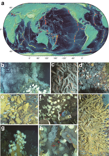 全球熱液噴口分布及熱液區(qū)的典型無(wú)脊椎動(dòng)物