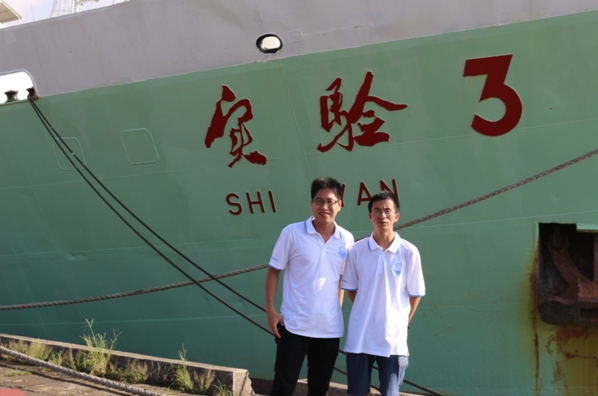 林明利(左)與方亮(右)在科考船前合影